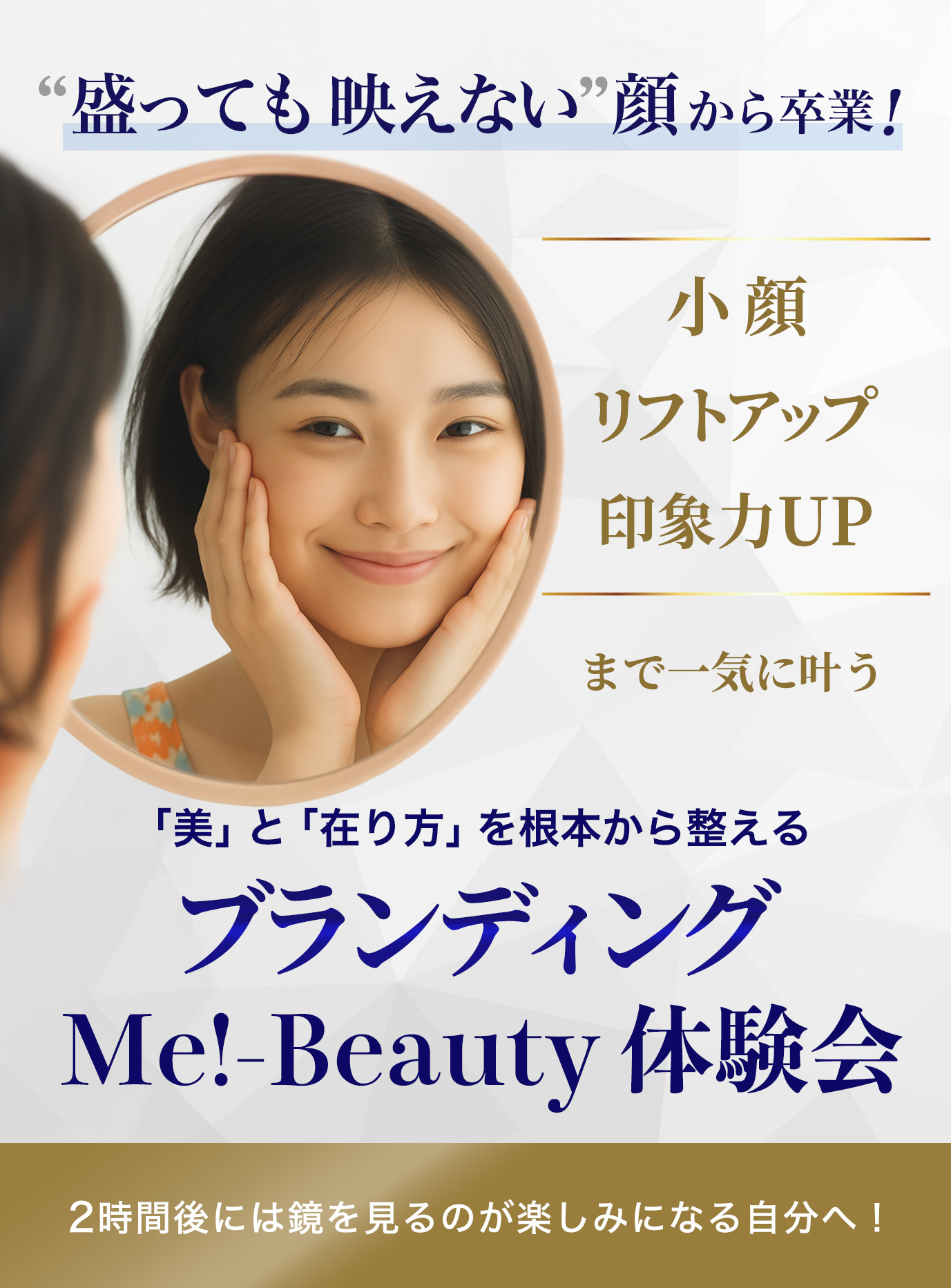 この体験会では、あなたが気づいていない「本来の顔立ち」「自然な魅力」「整ったエネルギー」を呼び覚まし、あなたを”唯一無二のブランド”として再構築していきます。